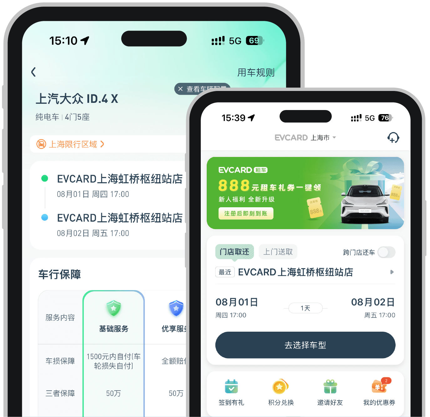 APP:可在手機應用市場搜索下載“EVCARD租車”APP進行預定。